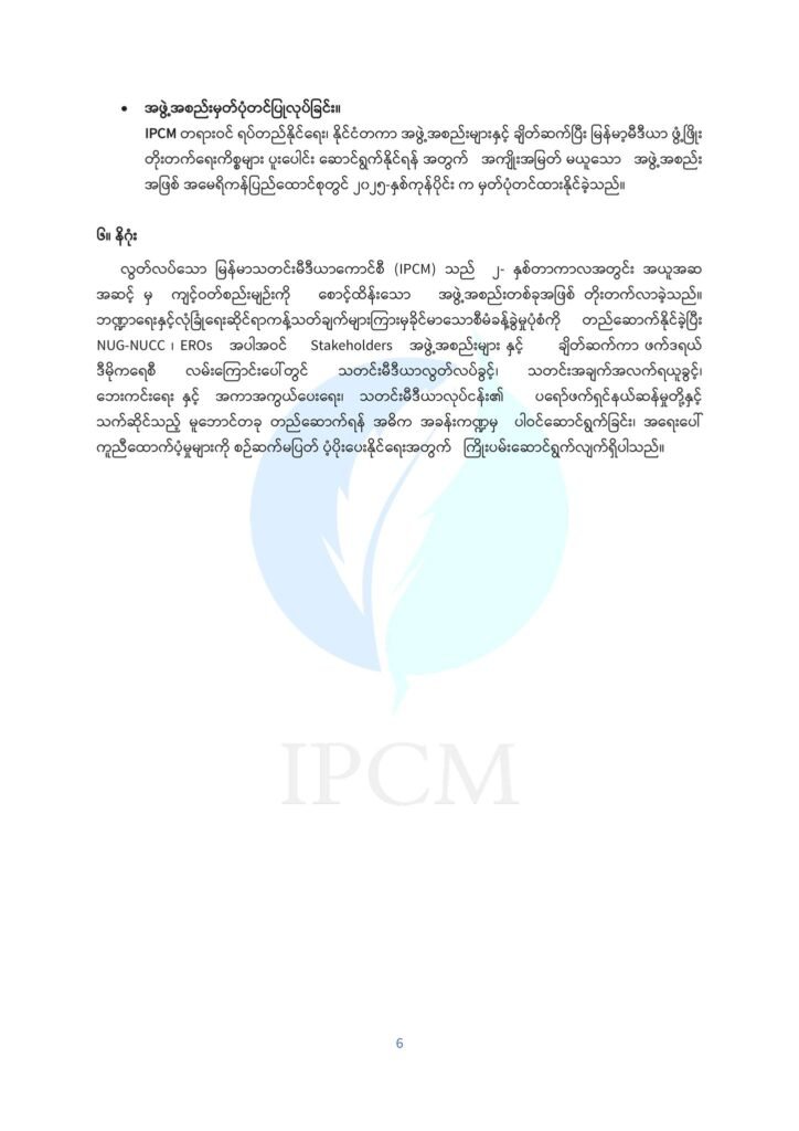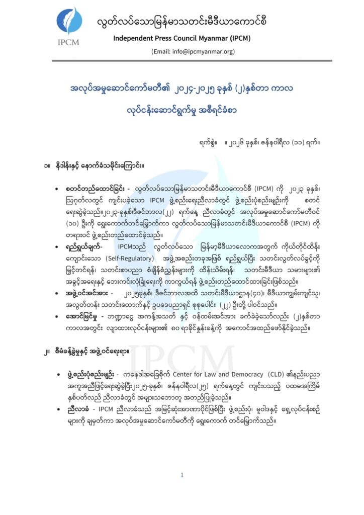 လွတ်လပ်သော မြန်မာသတင်းမီဒီယာကောင်စီ (IPCM) ကို ၂၀၂၃-ခုနှစ်၊ ဒီဇင်ဘာလ (၂၂) ရက်နေ့တွင် စတင်ဖွဲ့စည်းခဲ့ရာ ၂၀၂၅-ခုနှစ်၊ ဒီဇင်ဘာလတွင် သက်တမ်း (၂) နှစ် ပြည့်မြောက်ခဲ့ပါပြီ။
