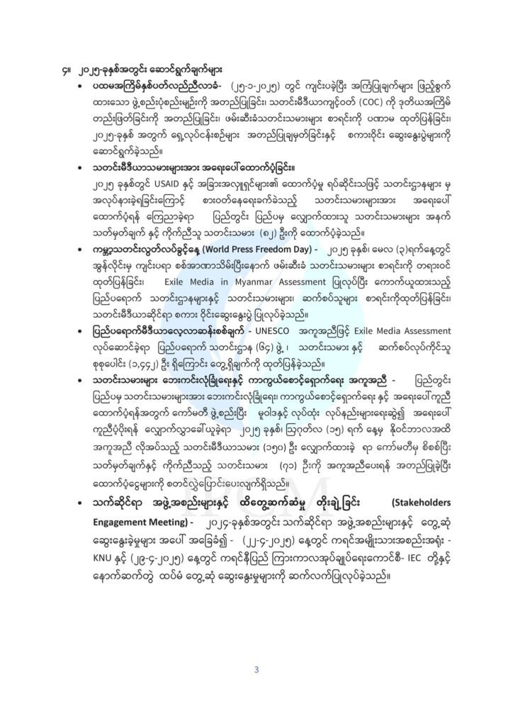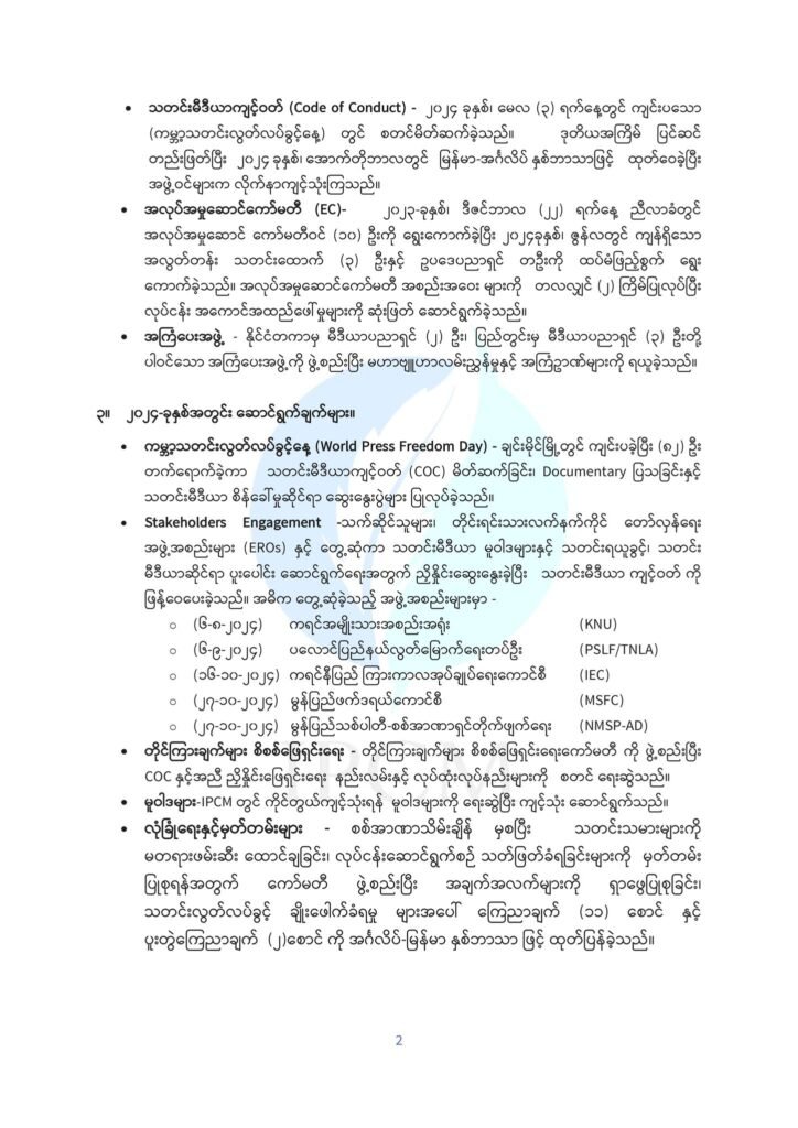 သို့ဖြစ်ပါ၍ ပထမ ၂- နှစ် သက်တမ်းအတွင်း အလုပ်အမှုဆောင်ကော်မတီ၏ ဆောင်ရွက်ချက် အစီရင်ခံစာ (အကျဉ်း) ကို သိရှိနိုင်ရန် ထုတ်ပြန်ကြေညာအပ်ပါသည်။